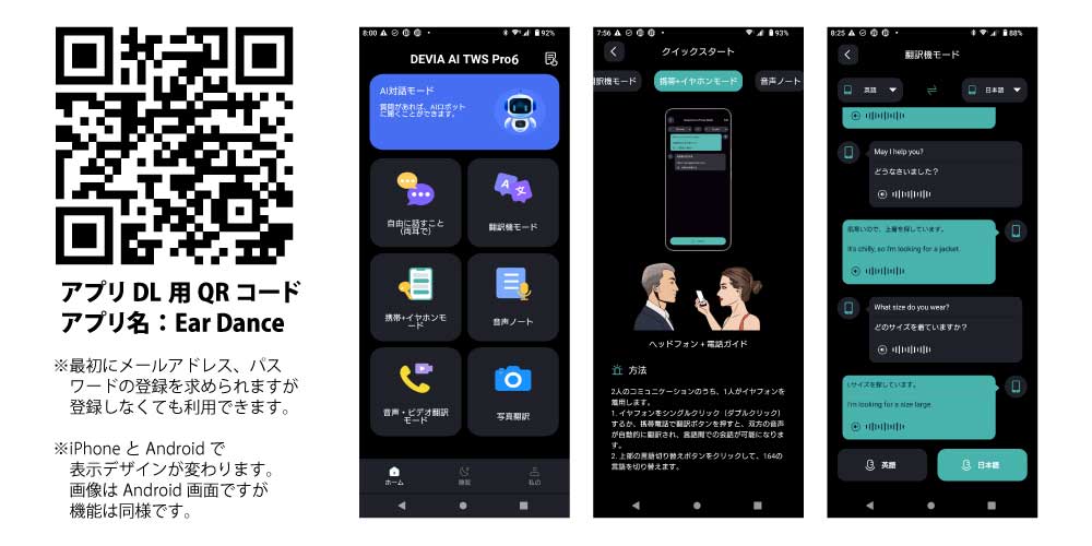 お互いにイヤホンを装着するだけ。現地の言葉がわからなくても、その場で会話が進みます。