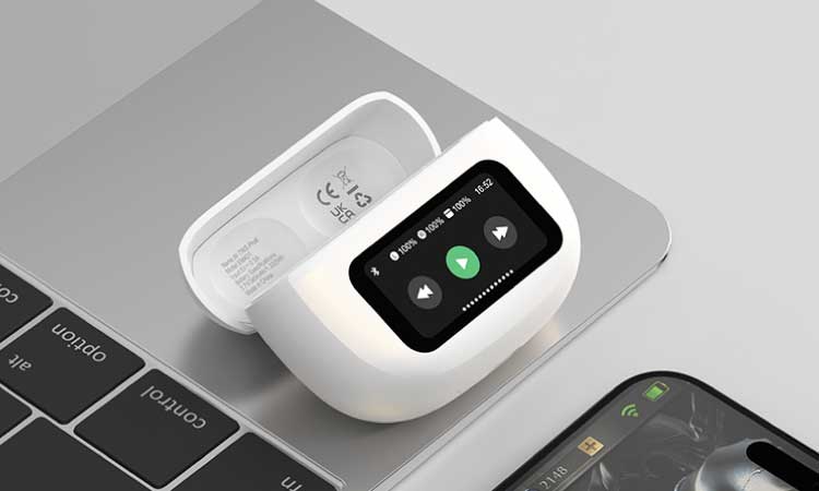 従来のワイヤレスイヤホンに AI翻訳 と スマートディスプレイ搭載ケース を統合。