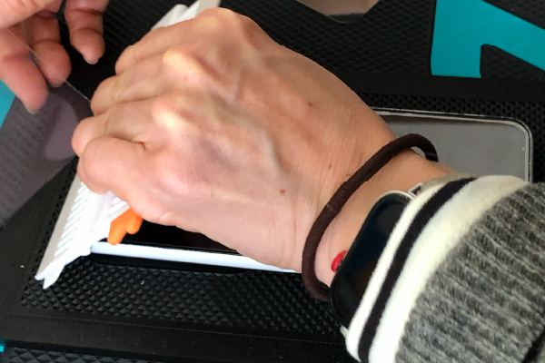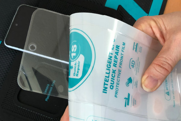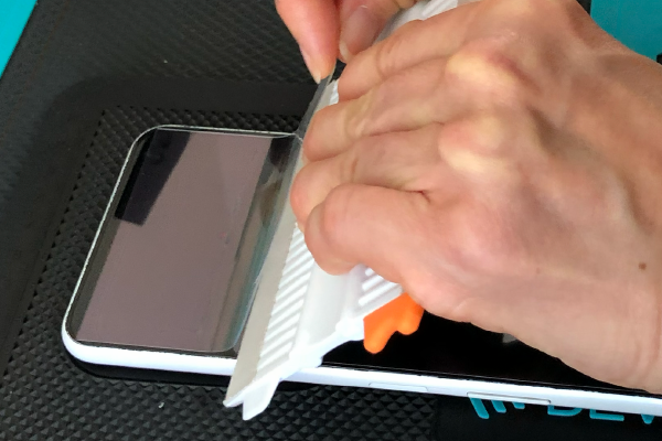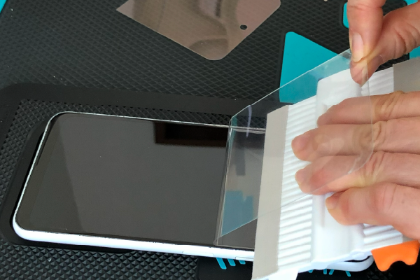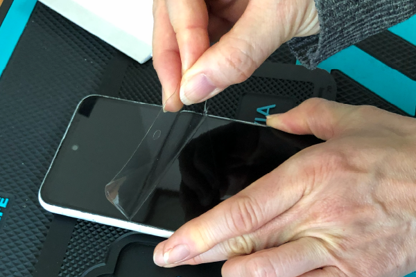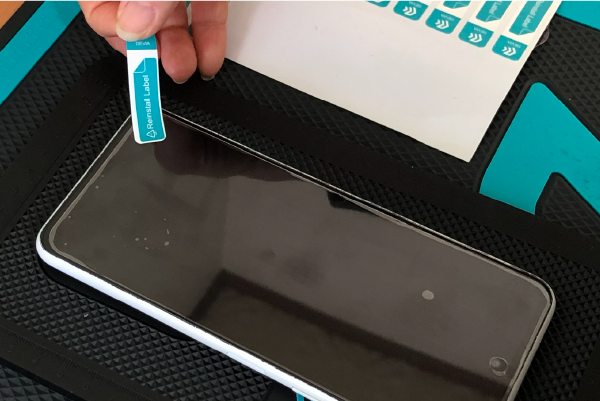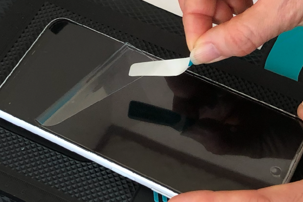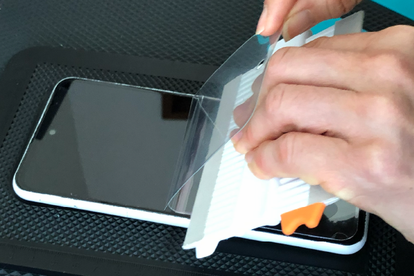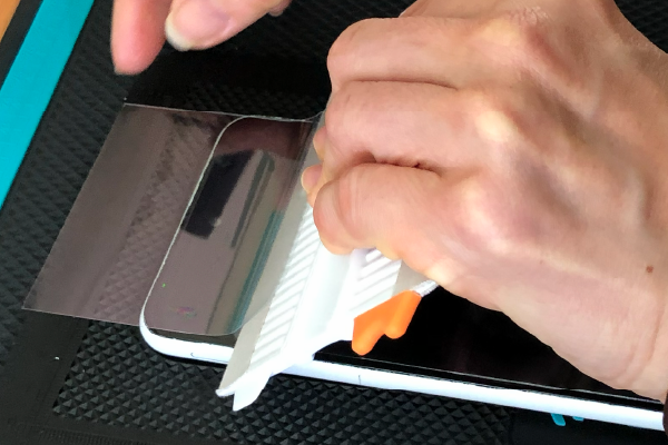 薄いヘラなどを用意して、元々端末に貼ってある保護フィルムがあれば剥がしていきます。